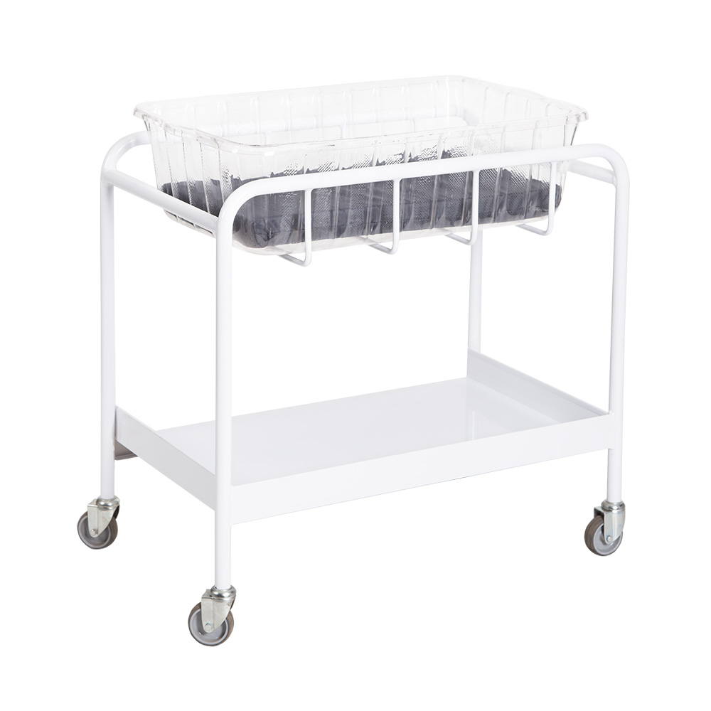 L 700mm x W 440mm x H 820mm, clear acrylic crib, 4 x 50mm swivel castors, water resistant taffeta covered mattress.