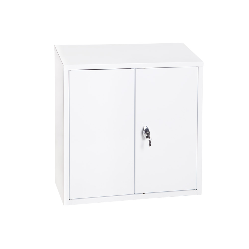 Epoxy powder coated, 1 fixed shelf, 1 adjustable shelf, lockable, schedule 7 lockable drug cabinet inside.