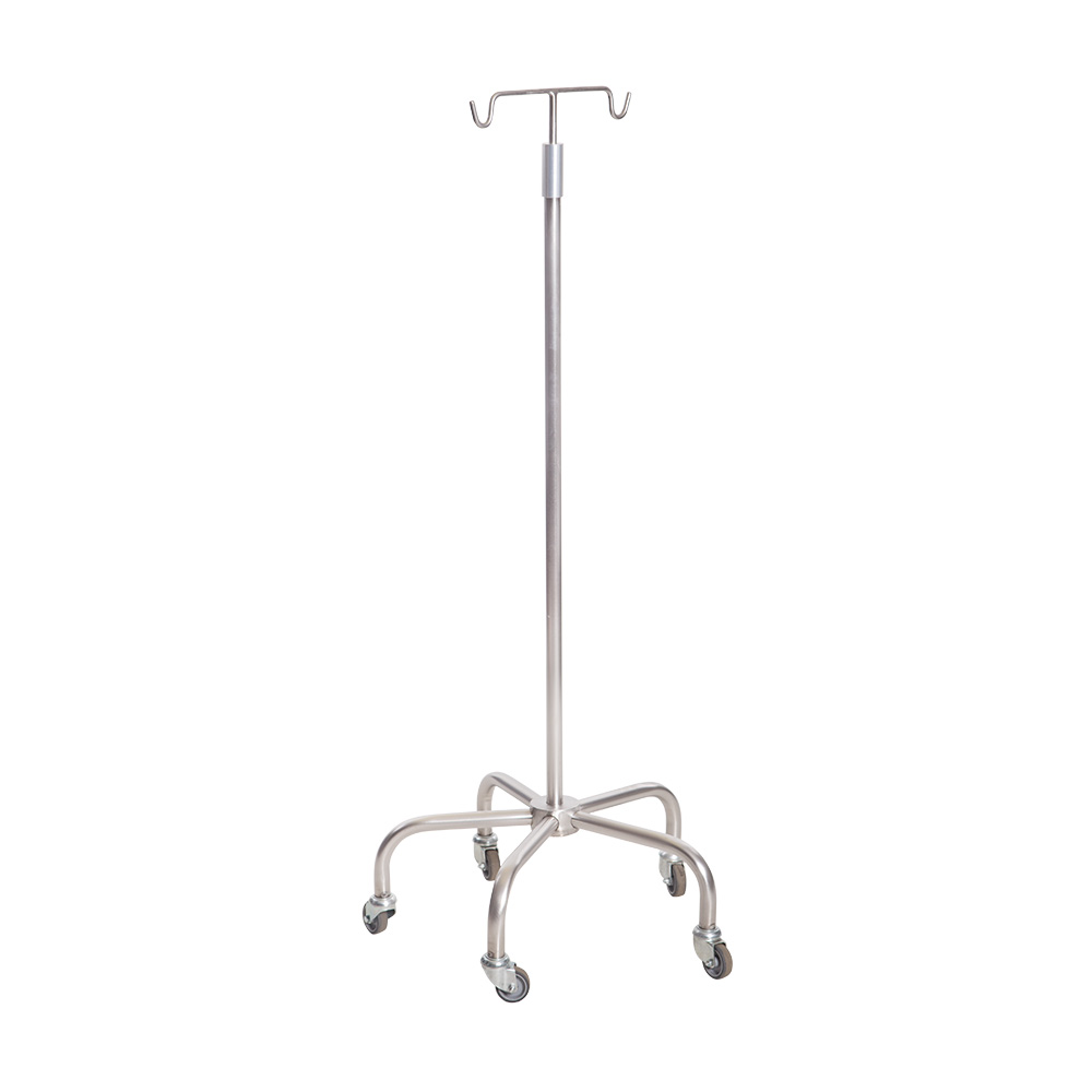 Stainless steel, 5 x 50mm swivel castors, adjustable T-rod, adjustable height (1300mm- 2000mm)